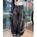 キーワード:ジーンズ デニム デニムパンツ レディース ハイウエスト バックプリント プリント フルレングス ワイドパンツ