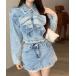 商品名:【上下2点セット】フロントビッグリボン 襟レース切り替え デニムショートジャケット+ バッグビッグリボン 裾レース&パール デニムショートスカパン