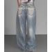 キーワード:ジーンズ デニム デニムパンツ レディース バックプリント フルレングス レギュラー ワイドパンツ 無地