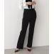 キーワード:パンツ レディース スタンダード ストレッチ スリット ハイウエスト フルレングス フレアパンツ 無地
