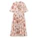 キーワード:ワンピース フレア ミモレ丈 花柄 洗える 半袖 防臭 抗菌