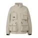 表地はコットンライクな表情のタスランナイロンを使用。フッ素化合物を含まないはっ水剤を使用したはっ水加工を施しており、多少の雨や汚れに対応します。裏地は肌離れのよいポリエステルメッシュ。大容量のマチ付きポケットは、中身が落ちにくいように面ファスナー式のフラップ付き。右胸のハーフドーム型ファスナーポケットは、貴重品の収納に便利です。背面にも大容量のマチ付きポケットを配置。襟にフードを収納できるビルトインフード仕様です。