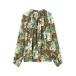 商品名:オータムガーデンプリント ネックギャザーブラウス