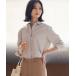 ブラウス バンドカラー 袖シャーリング 着痩せ ゆったり 大人 抜け感 エステルローン イージーケア 春 30代 40代 レディース
