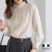 キーワード:ブラウス シャツ レディース ノーカラー フリル ワンポイント 長袖 無地 キレイめ フェミニン 大人カジュアル