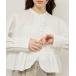キーワード:ブラウス シャツ レディース コットン ショート丈 ノーカラー フリル 長袖