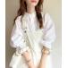 キーワード:ブラウス シャツ レディース ノーカラー フリル レース 長袖 無地 オケージョン キレイめ デート フェミニン 記念日 春