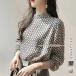 キーワード:ブラウス シャツ レディース ドット 長袖 無地 オケージョン オフィスカジュアル ビジネス フェミニン 大人カジュアル