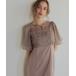 キーワード:ドレス フレア レース ロング 刺繍 半袖 無地