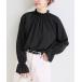 キーワード:ブラウス シャツ レディース スタンドカラー フリル 長袖 無地