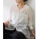 キーワード:ブラウス シャツ レディース ノーカラー 長袖 無地