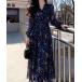キーワード:ワンピース フレア ロング 花柄 長袖 エレガント デート ドライブ 韓国ファッション 旅行