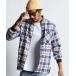 シャツ 「INDIGO LABEL」 INDIGO CHECK RIBBED SHIRT:インディゴチェック リブ袖シャツ メンズ