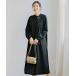 商品名:リブ イン コンフォート ブローチ付きで華やぐ ぐい伸びカットジョーゼットのボウタイブラックワンピース