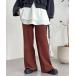 キーワード:パンツ レディース ウエストゴム フルレングス フレアパンツ ワイドパンツ 無地 ドライブ ナチュラル ベーシック 公園 紅葉 大人カジュアル