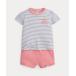 商品名:ストライプド コットン Tシャツ & メッシュ ショートパンツ セット