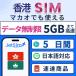 香港SIM/マカオSIM プリペイドSIM SIMカード データ容量1日/3GB 5日プラン 4G/LTE対応 データ専用SIM 高速データ通信 テザリング可能 海外出張 海外旅行