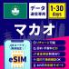 アイテムキーワード:eSIM マカオeSIM マカオ用eSIM 外国用eSIM 海外eSIM 海外用eSIM 1GB/日 データ無制限 プリペイドeSIM SIMフリー 留学 海外出張 海外旅行 ワーホリ