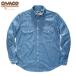ファクトリーブランドのCAMCOカムコ シャンブレーシャツは糸から厳選し、生地の織りムラ、フラップ付きの両胸ポケット、ステッチワーク、ホワイトの4つ穴ボタンなど、様々な部分にこだわりを感じさせるワークシャツになっております。長い歴史を持つCAMCOの中でも愛され続けたSHAMBRAY WORK SHIRTSです。洗いをかけて、シワ感を楽しんで頂いたり、TEEの上に羽織ってサラッと着てもカッコいいです。