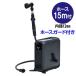 幅235mm×奥行365mm×高さ340mm:ホース内径12mm 、主ホース:15m、補助ホース:1.2m付き、材質本体:ポリプロピレン ホース:軟質塩ビ ノズル:アルミ、ABS、TPR、蛇口コネクター3点止め蛇口コネクター