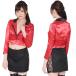 光沢感のある短めの真っ赤なジャケットがアクセントに!「ラスベガスディーラー」の登場です♪カジノディーラーをイメージしたこちらのコスチュームは、ジャケットとタイトスカートがセットとなっております。スカートの側面は大胆にもレース素材で肌が見えてしまうセクシーなデザイン!赤のジャケットを素肌に羽織ることで、更にアダルトな魅力を引き出せそうですね♪