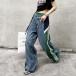 リメイク風 デニム 切替 パンツ ジーンズ ジャージ ライン 韓国 ストリート系 ダンス 衣装 Y2K K-POP スポーティー 海外 レディース 8J-63