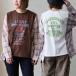 カットソー 長袖 レディース クルーネック リメイク プリント チェック柄 コットン 綿100 オープンエンド 天竺 ガーゼ 軽い 通気性 大きいサイズ 体型カバー カジュアル ヴィンテージ パティ
