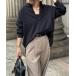 キーワード:ブラウス シャツ レディース ノーカラー 長袖 無地