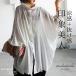 レーヨン100%の楊柳風素材を使用した前後差シルエットの抜け感ネックシャツはドルマンスリーブと後ろボタン付きの半端袖デザイン