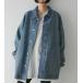 ワークジャケットをベースにオーバーに仕上げたデニムジャケット。ブルーは色落ちさせたブルーカラーに、微かにベージュのオーバーダイをすることで、ヴィンテージライクな色合いに仕上げました。ブラックはブラックデニムにウォッシュをかけ、程良い加工感を出しています。袖口と裾にカットオフされた別布を重ねているのがポイント。シンプルな胸ポケットと脇ポケット付きで、フラットなフロントデザインが着回し易く、軽く羽織れる一枚です。