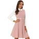 このショートドレスは、コントラストのあるターンダウンカラーとフロートな裾に落ちる長袖が特徴です。