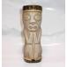 The brown pottery mugs have a wood-textured exterior with a full body tiki god design;