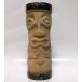 The brown pottery mugs have a wood-textured exterior with a full body tiki god design;
