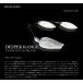 メジャーレイクの警戒心を高めたビッグバスを捕らえるために、やや強さを抑えた「ディーパーレンジ」。一般的にスピナーベイトの強さを抑える場合、ブレードを減らしたりサイズを下げてバイブレーションを小さくする手法が取られますが、これでは同時にフラッシングまでも失ってしまいます。それに対してディーパーレンジはブレードサイズを下げることなく独特なベンディングワイヤーセッティングでそれを実現。ナーバスなバスに接近するまでは驚かせないタイトバイブレーションでありながら、バスの攻撃範囲ではリアクションを誘うフラッシングを両立しています。さらにこのベンディングワイヤーのブレード抑制効果は、通常スピードのリーリングでワンレンジ下を平行引きできる、浮き上がりにくいバランスをも獲得。ネーミングの由来であるより深い(ディーパー)レンジを攻略できるベイトとして、クリアに限らずマディウォーターでも優れています。