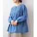 キーワード:ブラウス シャツ レディース デニム ノーカラー 長袖 無地