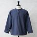 デッドストックのロシア軍スリーピングシャツです。スリーピングシャツの中でも人気の高いロシア軍の放出品ですが、こちらはその中でも年代が古い70年代に使用されていたロシア軍(旧ソビエト連邦)のスリーピングシャツになります。素材から縫製に至るまで、完成度の高さやクラシカルなヘンリーネックが人気の秘密です。そんな人気のアイテムを元々はホワイトの生地ですが、染め職人に丁寧にNAVY染めを施していただきました。ブルーに近いNAVYカラーが爽やかでアイテムを選ばず合わせやすい雰囲気に仕上がっています!袖をロールアップするなど、程よく着くずすことで肩の力を抜いた着こなしが楽しめます。