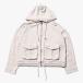 フード、裾には太めのツイストコードを通しているので絞ってシルエットの調整も可能です。