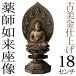 鋳物の町、富山県高岡市で製作した仏像。薬師如来の薬師とはお医者さんのことで、人々を病気の苦痛から救ってくれるとされています。手には薬壺(やっこ)と呼ばれる壺をもっており、人々のどんな病も治す万能な薬が入っているといわれています。この薬を使って、お薬師さまは私達の生きている世界を幸せに満ちたものにしてくれるそうです。仏様の色は古美金、真鍮が少し古びたような趣があり、奥深い色合いになっています。職人が一つ一つ色付けをし、細部まで繊細な仕上がりになっています。