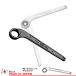 めがね部は12角、柄に対して40度の角度を持っています。これは普通のめがねレンチと違って、柄が上下方向に曲がっていなく、口だけが角度を持っているので使う場所によっては大変便利に使えます。片口メガネレンチ口径 38mm 全長 312mm 680g頭部外径 54ミリ頭部厚み 21ミリ日本製