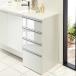 洗面所にぴったり!組立いらずのすき間収納チェスト洗面台の横のわずかなスペースを、収納や作業台として活用。洗面所などの水まわりにおすすめの収納チェストです。大理石調の天板と前面の光沢感が、高級感と清潔感のある空間を演出。引き出しは収納物にやさしい内部化粧仕上げと、使いやすさにこだわりました。