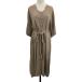 ハレ HARE ワンピース フレア ロング リボンベルト 無地 リネン混 七分袖 F 茶 ブラウン レディース