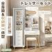 ドレッサー 360°回転全身鏡 LEDライト 引き出し付き スツール付き 無段階調光 ガラス天板 仕切り付き引き出し 2口コンセント USB搭載 鏡台 大容量収納