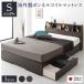 ブラウン ブラック 黒 シングルベッド マットレス付き コンセント付き 日本製 茶 棚付き 引き出し収納付き 海外製ボンネルコイル 照明付き 国産 宮付き