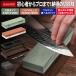 砥石本体のほかに、包丁の角度を一定にして研ぐことができる補助具(角度固定ホルダー)、溝入り面直し砥石(砥石表面を平滑に保つための砥石)、竹製台座(裏面滑り止めゴム貼付済)、簡易ゴム台座×2、取扱説明書がセットになった安心のフルセットです。