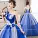 カラードレス 演奏会 ブルー ロングドレス コンサート ワンショルダー 発表会 ウェディングドレス 二次会 プリンセスラインドレス ステージ衣装 他人と被らない