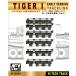 一枚の履板を薄くスライスし可動軸を挟みながら接着して繋げる連結可動式履帯の元祖。同社の車両キットには初期型のティーガーIが無いので純然たる他社用パーツです。一回で二枚のセンターガイドが付いて側面のピンの頭もスライド金型できれいに成形。強く引っ張れば壊れたり外れると言う、他社製品と変わらない弱点があります。