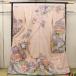 桃色を基調とした生地には、竜巻絞りや金彩が施され、豪華で高級感あふれるデザインが特徴です。