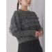 キーワード:ニット セーター レディース クルーネック ショート丈 フリル ボーダー リボン 長袖