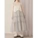 キーワード:ワンピース ティアード ノースリーブ リボン ロング 花柄 無地