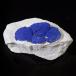 オーストラリア産アズライトサン原石です。アズライトサンは、銅系ミネラルであるアズライトが、太陽を彷彿させる円盤状に結晶したものです。アズライトは鮮やかなブルーの発色が魅力ですが、結晶がデリケートな為、美しいクリスタルは希少であり、価値も高くなります。このアズライトサンは、カオリナイト(カオリン)中の僅かなクラックなどを伝い、銅分が円盤状に拡がって出来た、大変ユニークな結晶です。色は比較的明るめのブルーで、ファンが多いにもかかわらず、マルバンガーという、個人所有の地域から産することから、流通量が非常にかぎられます。